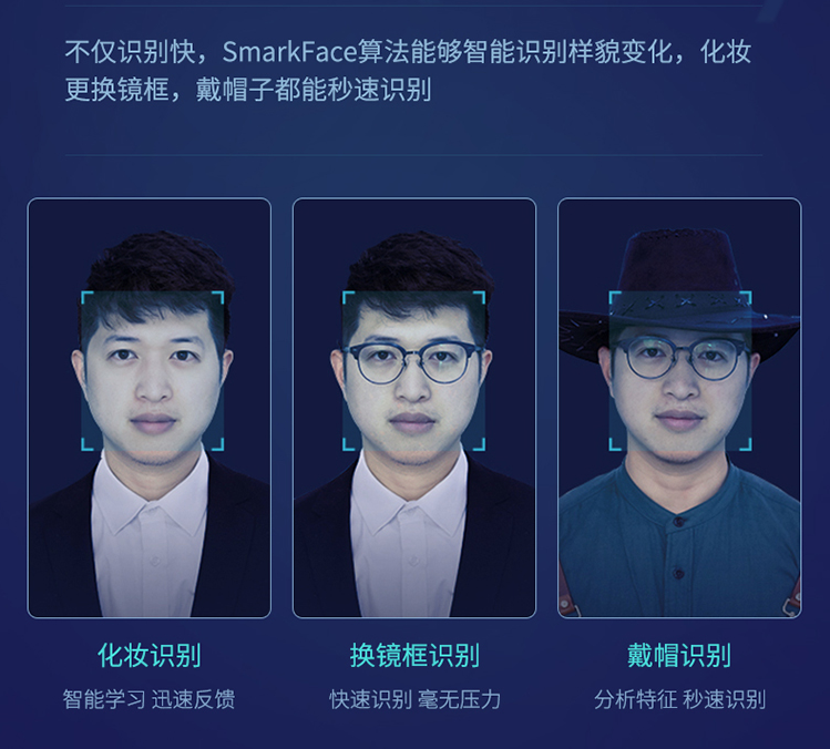 3、面部识别更智能,化妆更换镜框,戴帽子都能秒速识别